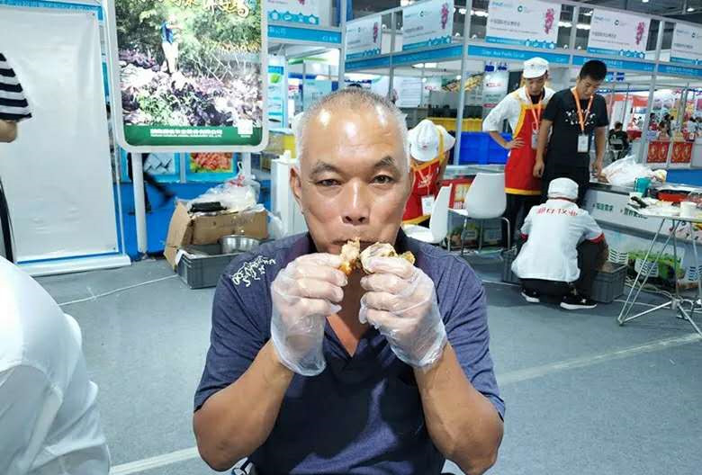 這位叔叔連續(xù)兩天從湘佳展位上買了石門土雞。叔叔說:“我昨天買了湘佳的石門土雞,味道的確不錯,我馬上要去廣州幫女兒帶寶寶,我給她帶一只過去,給我女兒煲湯喝”。
