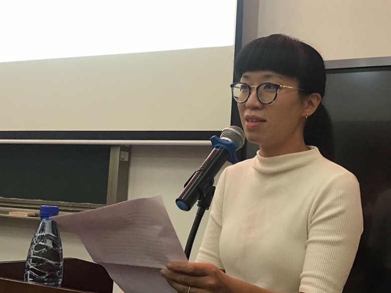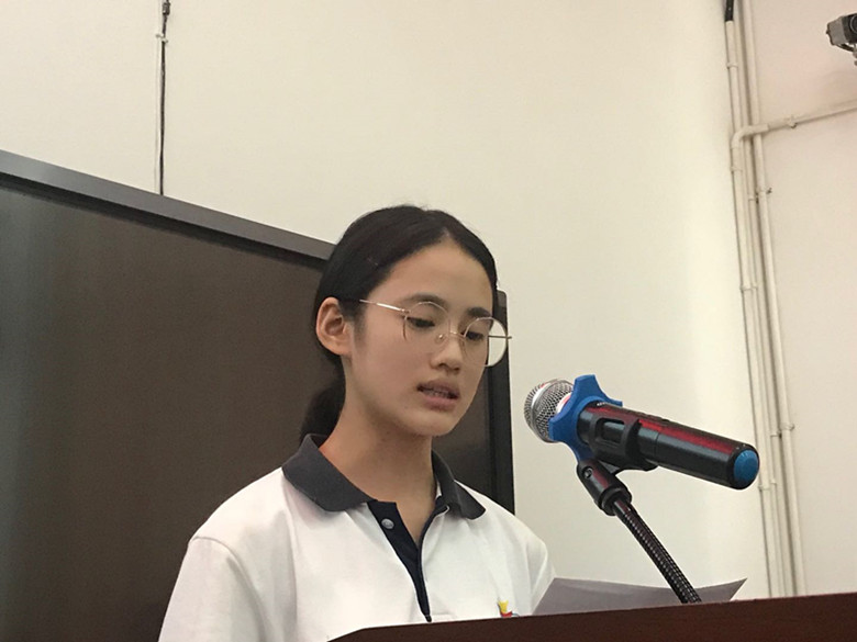 石門一中教師代表肖霄、學生代表涂鈮在頒獎儀式上做了發言。