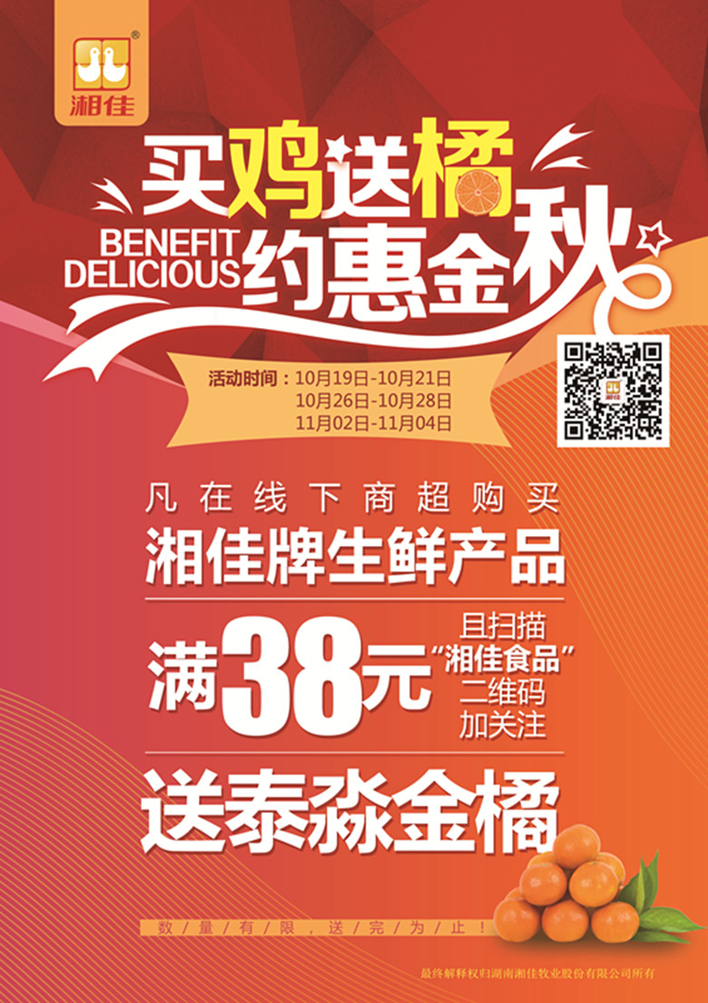 金秋特惠,買雞送橘,湘佳牧業(yè),賣雞送吉!